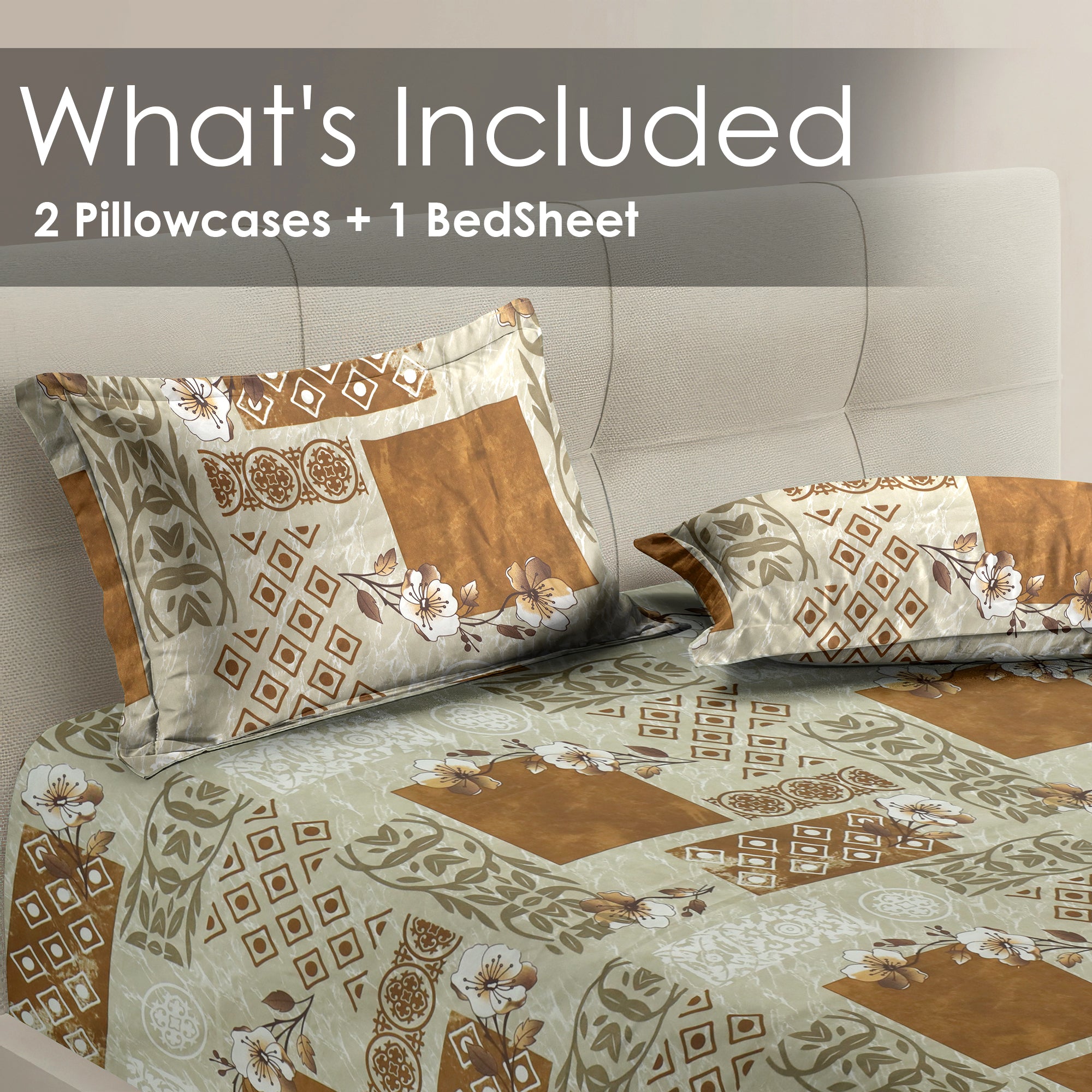 DIVORA CASA Geometric Floral Double Bedsheet Set – Satin Twill, 180 TC, Soft & Durable