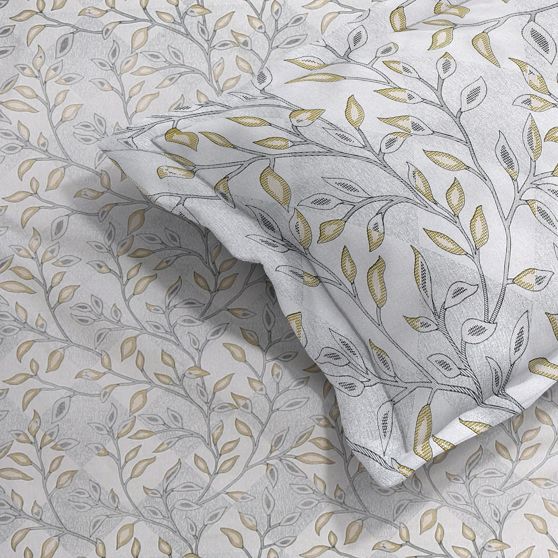 🎨 Design: Elegant grey leafy vine print with subtle mustard detailing