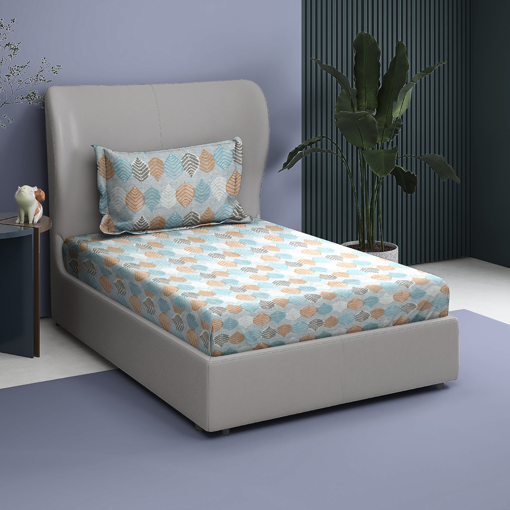 Premium Cotton Rich Single Bedsheet β Handblock Leaf Motif | 180 TC | 140 cm x 225 cm