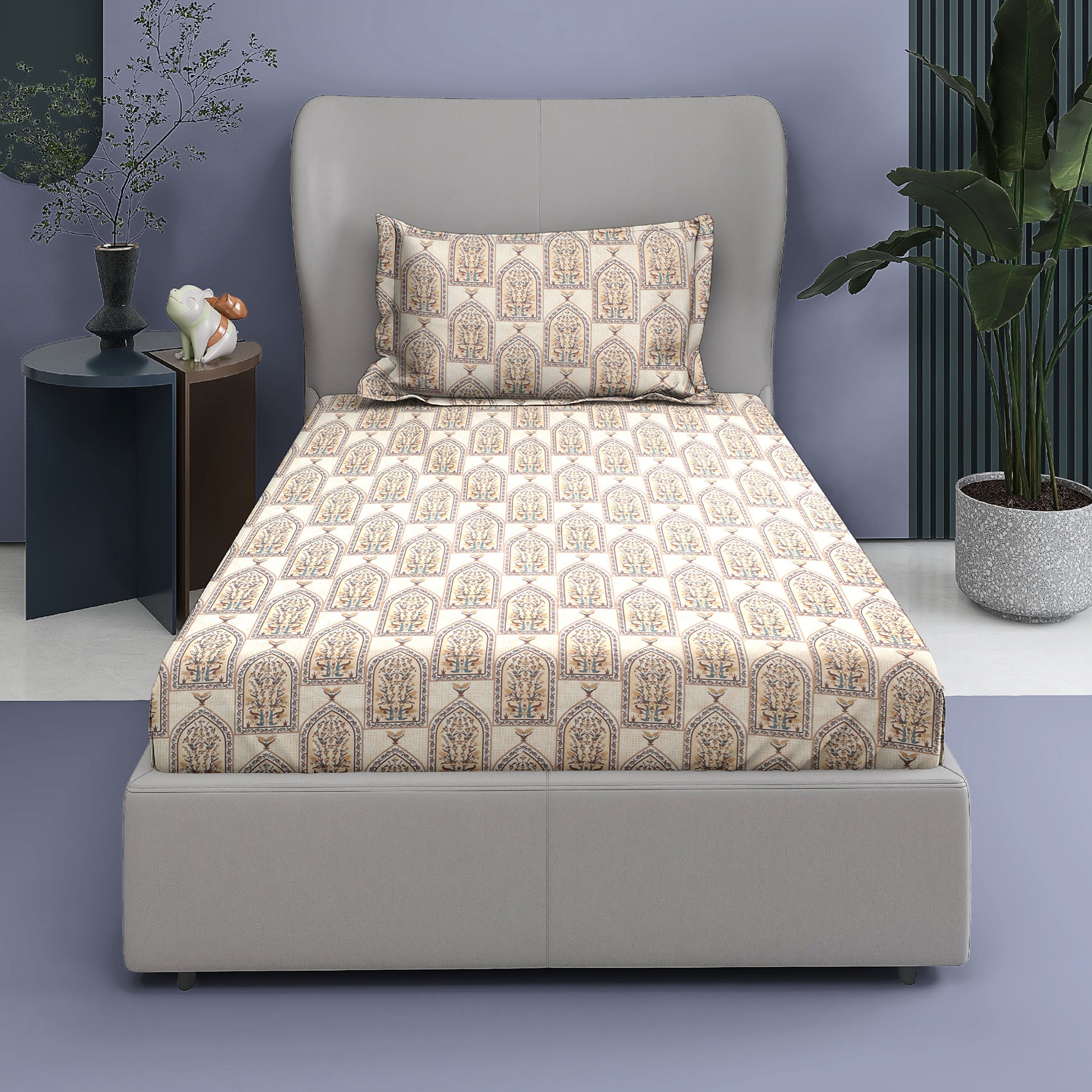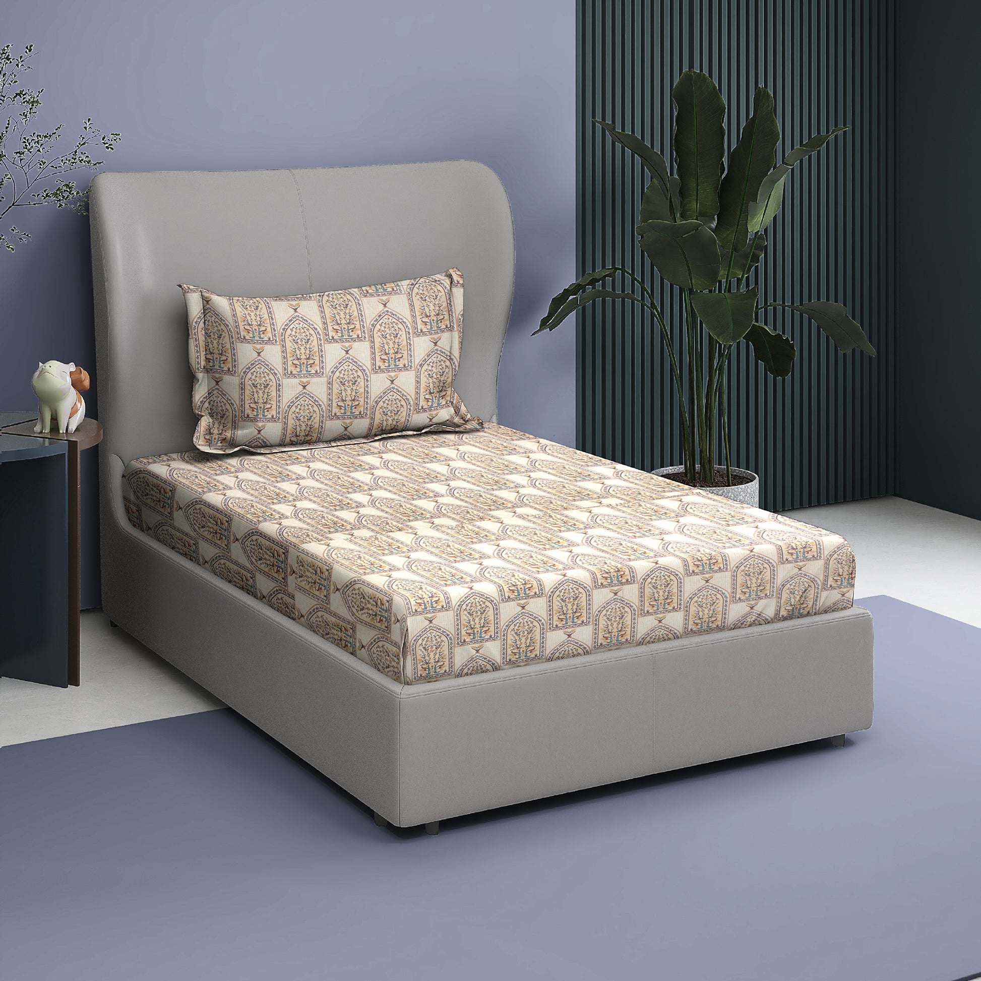 Premium Cotton Rich Single Bedsheet β Mughal Arch & Tree Print | 180 TC | 140 cm x 225 cm